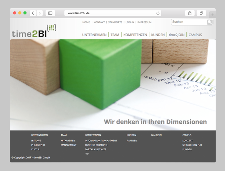 Konzeption und Gestaltung der INTERNETSEITE und anderer digitaler Medien für ein Consulting Unternehmen aus dem Bereich der Business Intelligence und Beratung unter Verwendung des neu erstellten Corporate Designs.