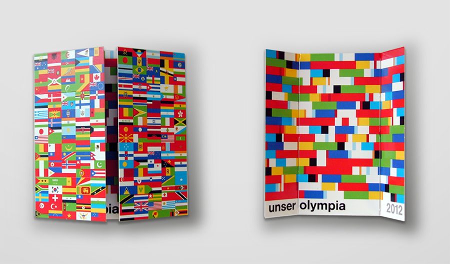 Ergebnis: Durch Falten, Knicken und Drehen des Flyers, sprich durch seine intuitive Benutzung, wird die Geschichte des Logos der Olympiabewerbung von Düsseldorf Rhein-Ruhr um die Spiele 2012 spielerisch erzählt. Beginnt man mit der Flaggen-Seite, so werden nach und nach die Farbfelder zu Farbstreifen, um – auf der Rückseite angekommen – das vollständige Logo der Olympiabewerbung „Unsere Spiele – so bunt wie die Welt“ zu zeigen.