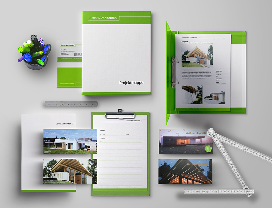 PRINTMEDIEN für ein Architekturbüro unter Verwendung des neu erstellten Corporate Designs, Erstellung der kompletten Geschäftsausstattung.